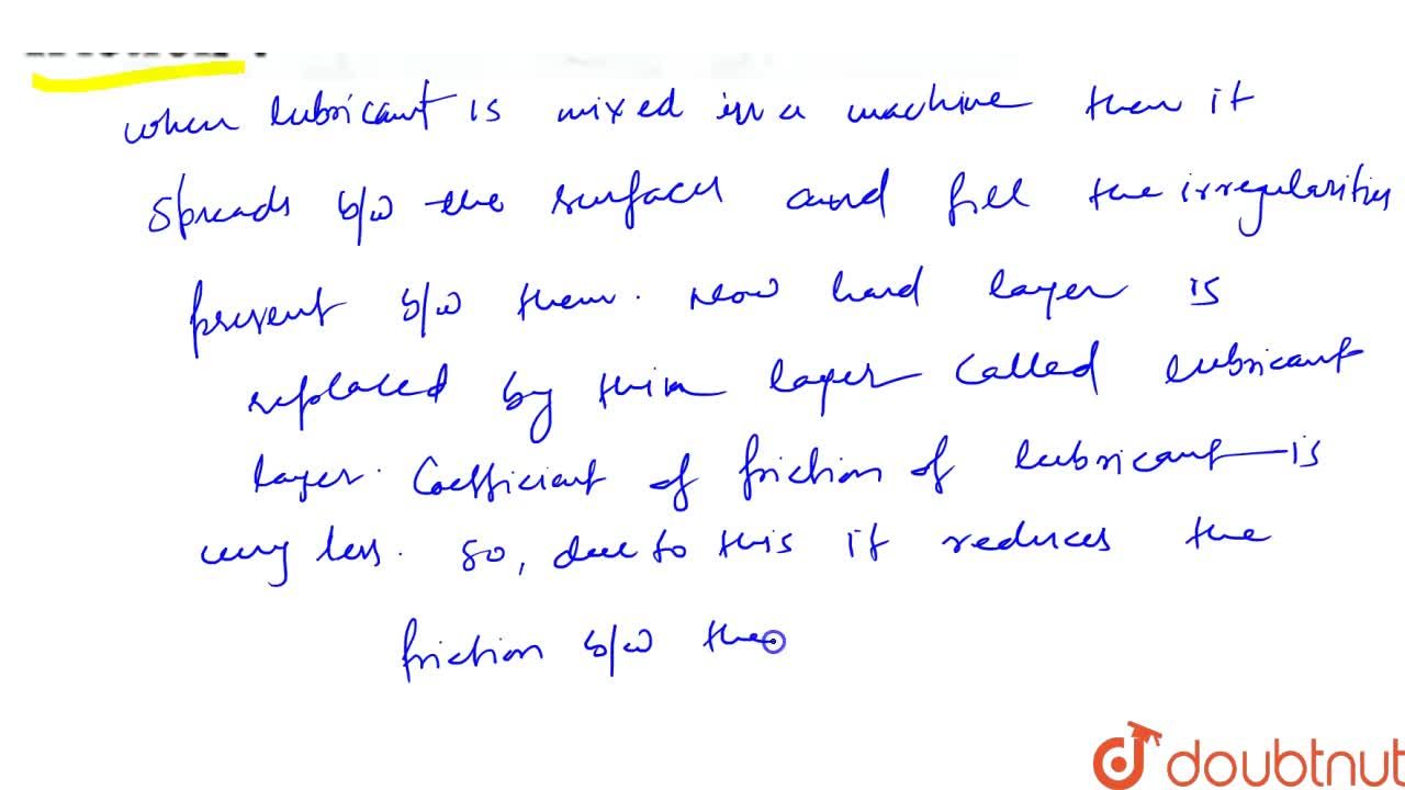 As a result of it, the contact between the two hard surfaces is replaced by the lubricant layer due to it the force of friction reduced considerably. How do these lubricants help to reduce friction between moving parts of machines? Lubricants help in smoothen the parts of the machines with grating surfaces. Hence, lowering the level of resistance.