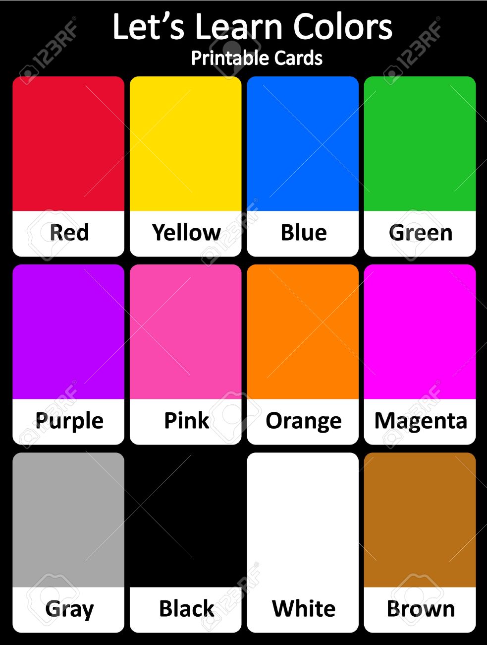 Learn About Colours | Kids | EnglishClub Here is a colour chart* to help you with some of the most common colours. The first 7 colours on the wheel are the colours of the rainbow. Listen to the pronunciation... 1. red 2. orange 3. yellow 4. green 5. blue 6. indigo 7. violet 8. purple 9. pink 10. silver 11. gold 12. beige 13. brown 14. grey / gray 15. black 16. white FREE Color Worksheets for Kids - Preschool Play and Learn These free preschool worksheets are a great way for kids learning colors to practice. There are 11 black and white worksheets to pick from including: black - arrow, bat, camera, eight ball, hat, dress, ant, crayon, tire, cat white - bunny, button, bear, snowflake, milk, crayon, swan, igloo, ambulance "Color Songs Collection Vol. 1" - Learn Colors, Teach ... This Long-Play 33 Minute Video Teaches Children the Color Names with Catchy Song Melodies, Chants and Lessons starring our Famous Cute Characters and Colorfu...