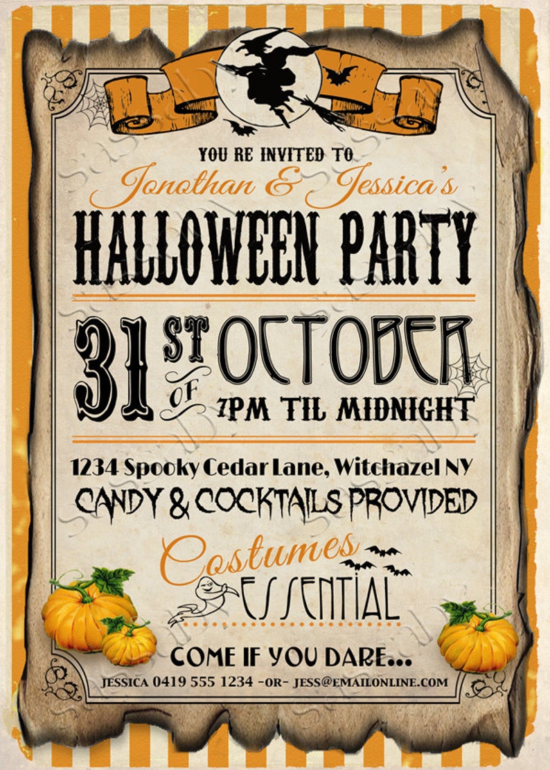 Halloween Party Invitation Wording - AllWording.com Organizing a Halloween party can be a monstrous task, whether it's for friends, your kids, or the office potluck. That said, coming up with the perfect Halloween party invite can be a lot of fun if you only conjure up a little creativity. With all the weird and wonderful things associated with the holiday - witches, ghosts, goblins, and so on - there's a lot of potential for fiendishly ... 29 Halloween Costume Party Invitations ideas | halloween ... Oct 5, 2015 - Halloween costume party invitations. See more ideas about halloween costume party invitations, costume party invitations, party invitations. Amazon.com: costume party invitations 50 Halloween Costume Party Invitations, Kids or Adults Birthday Halloween Party Invites, Monster Trunk or Treat or Trick or Treat Party Invitation, Pumpkin Invite 50 Count (Pack of 1) 89 $14 99 ($0.30/Count) Get it as soon as Wed, Nov 3 FREE Shipping on orders over $25 shipped by Amazon Only 1 left in stock - order soon. Amazon's Choice Custom Halloween Invitations | Etsy Check out our custom halloween invitations selection for the very best in unique or custom, handmade pieces from our invitations & announcements shops.