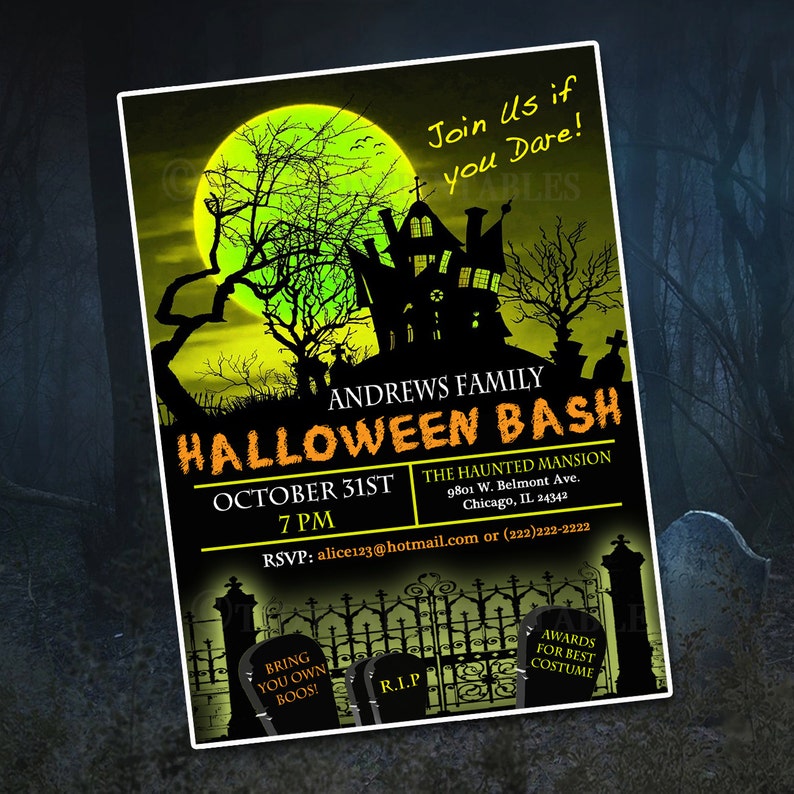 Halloween Invitations, Halloween Party Invitations Halloween Invitations invite ghosts & goblins alike to flock to your haunted house to party the Halloween night away. You'll love our exclusive Halloween party invitations with Halloween invitations for adults, kids and teenagers. With the success of "True Blue" and "Twilight", vampire Halloween party invitations are a hot theme.