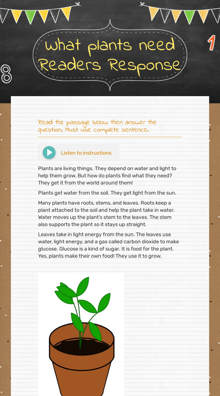 Biology of Plants: Making Food Plants make food in their leaves. The leaves contain a pigment called chlorophyll, which colors the leaves green. Chlorophyll can make food the plant can use from carbon dioxide, water, nutrients, and energy from sunlight. This process is called photosynthesis. During the process of photosynthesis, plants release oxygen into the air. People and ... What Plants can do for Us? | Where do Plants get their Food ... Plants can only make their food in the sunlight. A plant makes its food in its leaves. In the sunshine, the water and carbon dioxide are combined in the green leaves, to make plant food. While this happens, the plant makes oxygen. This oxygen goes out into the air through the tiny holes on the leaves. When you water a potted plant, the roots ... What 2 things do plants make in photosynthesis? Also Know, what 3 things plants make during photosynthesis? To perform photosynthesis, plants need three things: carbon dioxide, water, and sunlight. for photosynthesis. Carbon dioxide enters through tiny holes in a plant's leaves, flowers, branches, stems, and roots. Plants also require water to make their food. What Do Plants And Animals Need To Live? | Smithsonian ... Life Science. What Do Plants and Animals Need to Live? is part of Smithsonian Science for the Classroom, a new curriculum series by the Smithsonian Science Education Center. It is designed to address a bundle of kindergarten life science and earth science standards.