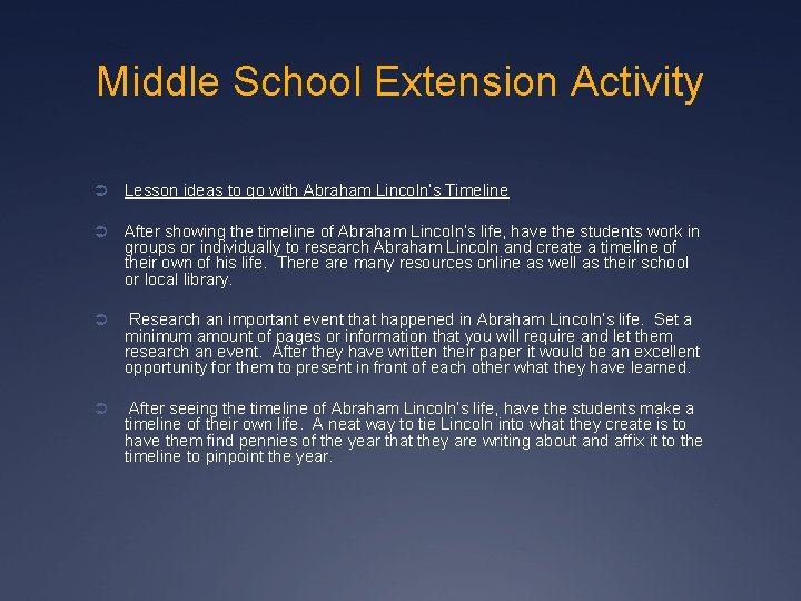 Abraham Lincoln Event Timeline. Abraham Lincoln (16) Event Timeline. 03/04/1861-04/14/1865. 11/06/1860. Election Day. 12/05/1860. Electoral College votes cast. 12/17/1860. Secession Convention meets in Columbia, South Carolina. Lincoln runs for his first political office, in the Illinois state legislature, and loses. He wins election in his second attempt, in 1834, and then wins reelection three times thereafter. 1836 Lincoln becomes a lawyer, taking on cases involving everything from small disputes to murder. Abraham Lincoln facts and information about his role as President and the initial steps in the Civil Rights Movement, including the Emancipation Proclamation The 16th President of the United States Select Language Armenian Azerbaijani Belarusian Chinese (Simplified) Croatian English French Spanish Timeline of. Abraham Lincoln's Life. Presidents of the USA. 1779. Daniel Boone brings Abraham Lincoln's grandmother and grandfather to settle in Kentucky. 1809. Abraham Lincoln is born in Kentucky, the US bans the import of slaves. 1842. Lincoln marries Mary Todd.