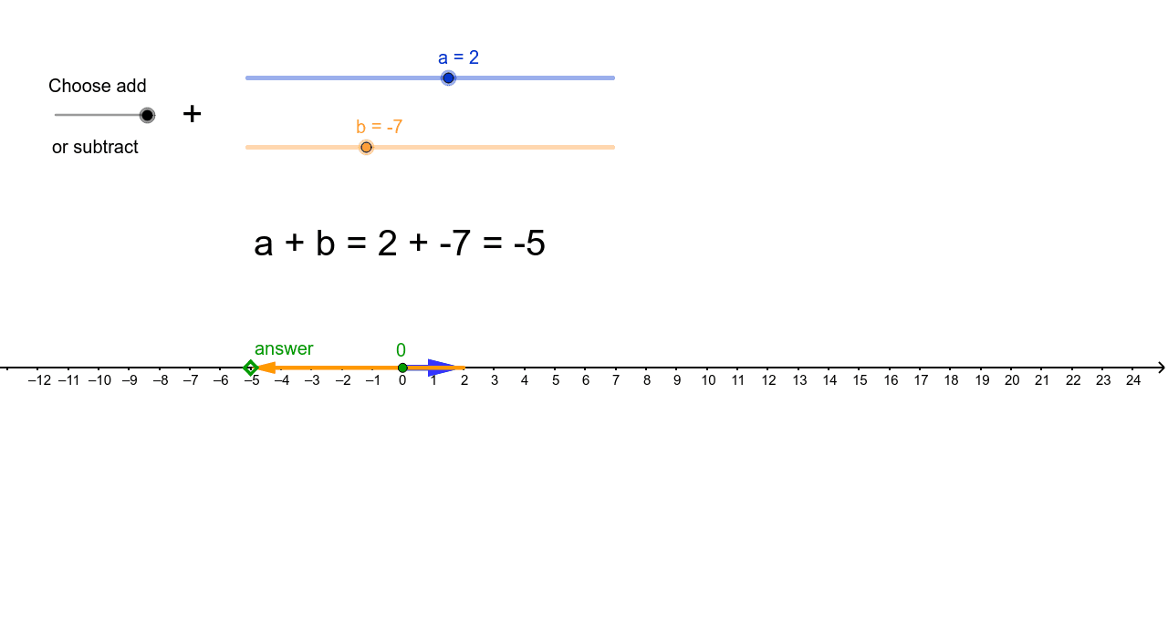 Add and Subtract Numbers using the Number Line - ChiliMath Example 3: Simplify by adding the numbers, –6 + 5. Find where the first number, −6, is on the number line. To add five (5), the original point will be moved five (5) units to the right of the number line. This gives us –6 + 5 = –1. Example 4: Simplify by adding the numbers, –1 + (–6). This time around, we are adding two negative ...