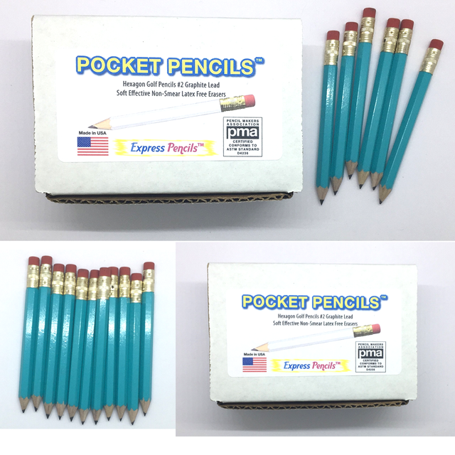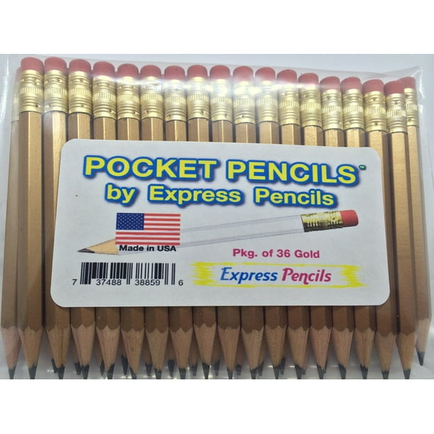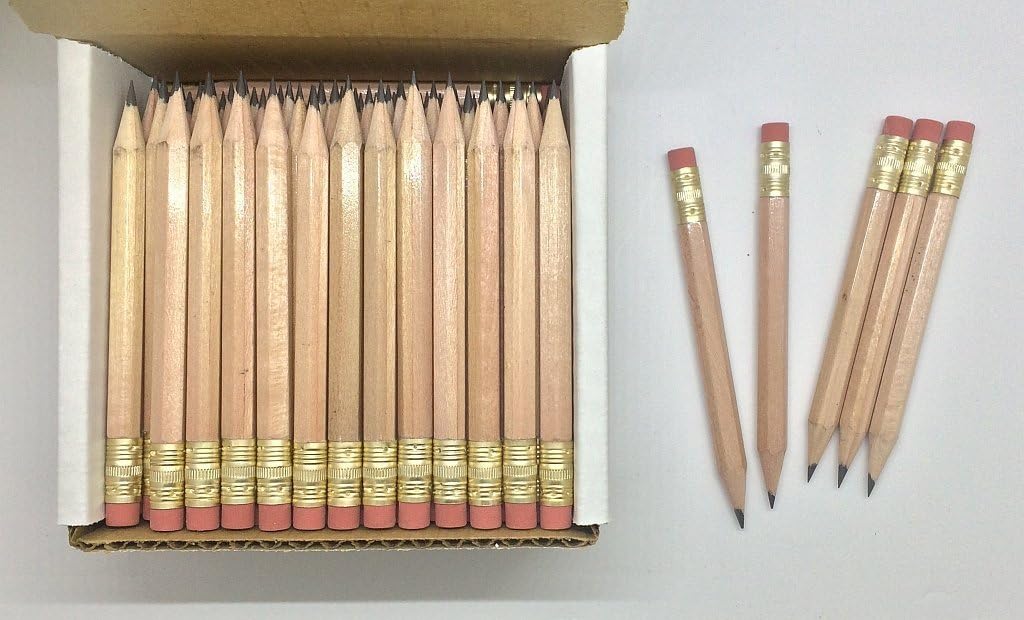Express Pencils Half Pencils with Eraser - Golf... - Amazon.ae . 72 Golf Pocket PencilsTM Sharpened, hexagon shaped, black color with pink/red eraser. Short Small Mini Half Pencils, #2 HB Graphite lead. Includes White Sturdy Storage Box Save money with these high quality wooden half pencils. They have an eraser which will last as...