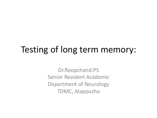 Jun 18, 2020 · Long-term memory test. Unfortunately, long-term memory is much more difficult to test and study. There are no established parameters for the normal amount of information to have stored in your long-term memory about any past event, which makes it difficult to create a test that quantifies this memory. This is why no verified long-term memory ... Take the Healthy Brain Test and learn about risk factors for Alzheimer's and dementia, and how diet choices, sleep quality, concussion history, and physical exercise can affect your brain health. Based on the latest data from evidence based research, and your answers to this short quiz, a free personal brain health report will be ... In some cases, doctors will use an Abbreviated Mental Test Score (or AMTS), especially in the elderly. This is more for confusion and dementia and covers simple questions that should be stored in one's long-term memory. The AMTS focuses on the patient's ability to recall data, such as the year of their birth, their name, etcetera. If you notice your loved one displaying symptoms of long-term memory loss, get them to a doctor who can administer specific memory loss tests to confirm a diagnosis and treatment regimen as soon as possible. Many disorders are sadly progressive, and cannot be cured.