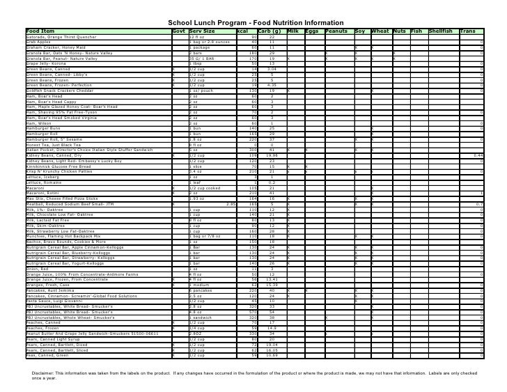 School lunch nutritional facts. Nutrition Requirements of the School Meal Programs - AAF A study of elementary and middle-school students conducted after the new nutrition standards were enacted found that few students' nutrition intake during lunch met the new, or even the previous, nutrition standards. Elementary students in the study were found to have wasted over one third of their grain, fruit, and vegetable servings; the ... 7 School Lunch Options For Student Athletes - Heather ... Instead, the school lunch must meet the set minimum and maximum calories for the age group being served. That means, a 16 year old, 5'2", 115 pound female dancer is offered the same school lunch as a 16 year old, 6'2", 170 pound male football player, even though their caloric requirements are much different. How Many Calories Are In A School Lunch Chicken Sandwich ... A whole-grain breaded chicken patty and a school lunch containing them is part of the meal. Each 86 g serving of the whole grain breaded chicken patty provides 212 calories at School Lunch. Including 12 grams of fat, 15 grams of protein, and 11 grams of carbohydrates, this serving contains more than half the daily recommended intake. ask.usda.gov › s › articleWhat are the nutritional requirements for school lunches? School lunches must meet the applicable recommendations of the 1995 Dietary Guidelines for Americans, which recommend that no more than 30 percent of an individual's calories come from fat, and less than 10 percent from saturated fat. Regulations also establish a standard for school lunches to provide one-third of the Recommended Dietary ...