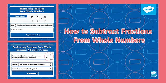 Subtracting Fractions from Whole Numbers Worksheet How to subtraction a fraction from a whole number? Make sure the denominators (bottom numbers) are the same Subtract the top number (numerators) Simplify the fraction if necessary The above video may be from a third-party source. We accept no responsibility for any videos from third-party sources.