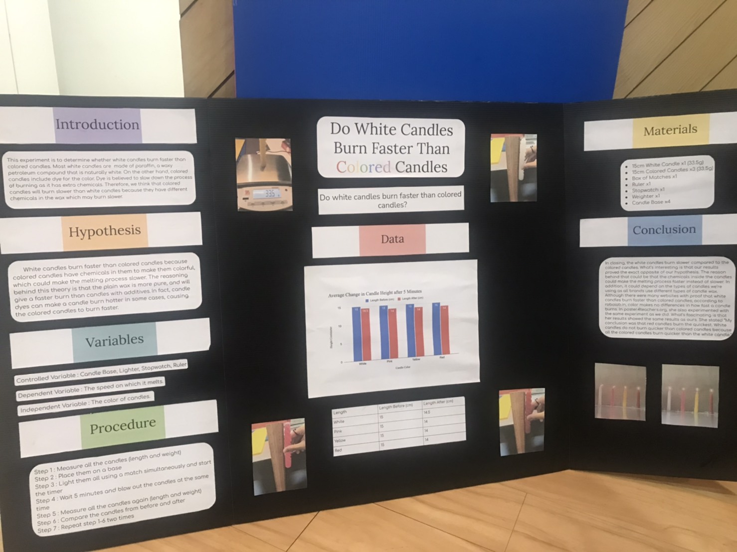 Science Fair Project Ideas on Candles | Sciencing | Burning Rates Burning Rates. There is a hypothesis that white candles burn faster than colored ones. To test this, buy white (uncolored wax) candles, blue You should make your project interesting by using colorful posters or making interesting informative videos. Models and and hands-on materials keep visitors...