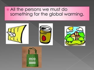Global warming is a serious problem for humanity as well as to the whole environmental system. There were always periods of global warming in the history of the earth, however On the other hand, when these children become adults, they are more likely to behave in an environmentally friendly way.