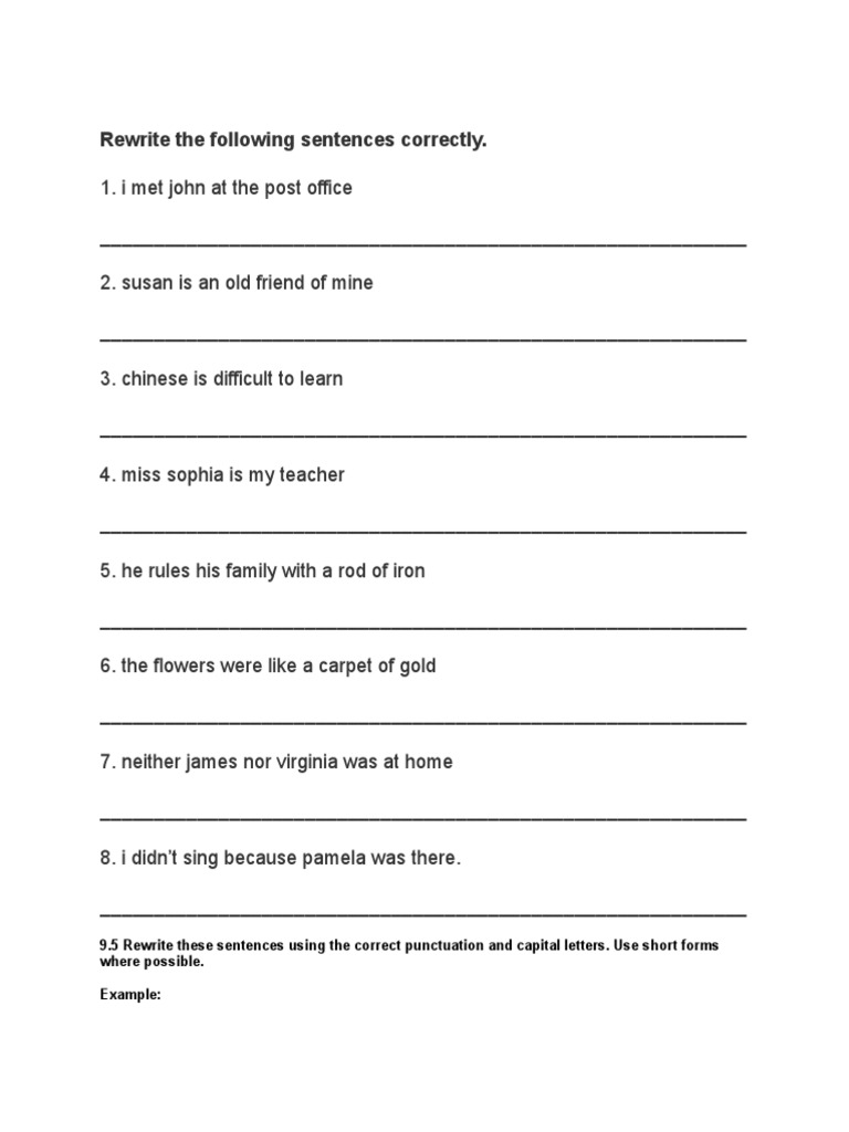 Expert Help on Rewrite Sentences Without Mistakes Rewrite sentences correctly using only the notes without referral to the original text; Compare the rewritten text and write any inadvertently repeated text; We Guarantee the Best Quality From Our Rewriting a Sentence Company. Rewrite My Essay: Reworder for Students - Free & Easy-to ... You reword the cited material enough to make the sentence structure and word choice different from the original. Copying a sentence from the source, you cite it as a quote. To make your rewriting far from the original wording, try putting away the text once you have read it. Wait for several minutes. Rewrite the sentences correctly - English Grammar Rewrite the sentences correctly May 3, 2014 - Complete the following sentences using an appropriate word or phrase. 1. My father knows how to teach English ............................. well good 2. We want a new house to .................................... live live in 3. Rewrite the sentences correctly | Spanish Translator rewrite the sentences correctly Translation reescribir las oraciones correctamente Translated by Show more translations Word-by-word Want to Learn Spanish? Spanish learning for everyone. For free. Translation The world's largest Spanish dictionary Conjugation Conjugations for every Spanish verb