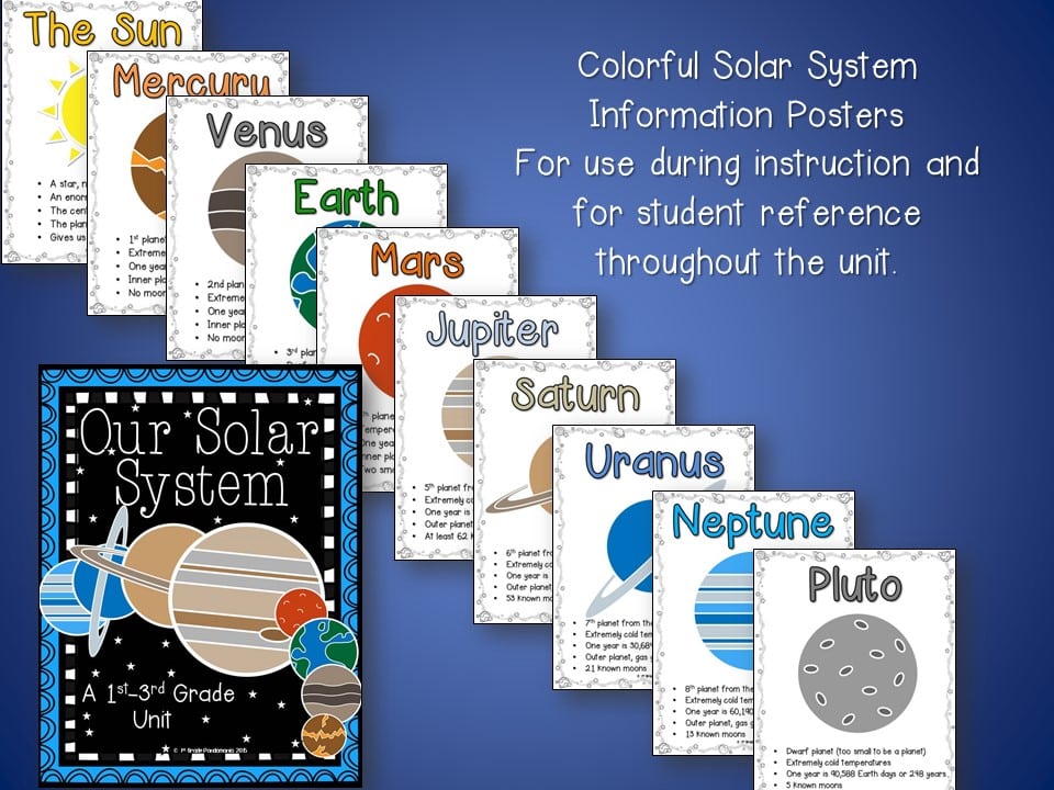 Solar System Activities - 1st Grade Pandamania My first graders also get a Solar System Book to read, color and fill out as we go through it together and learn about our solar system. Then they use the information in their book as well as the reference posters to create their own report!