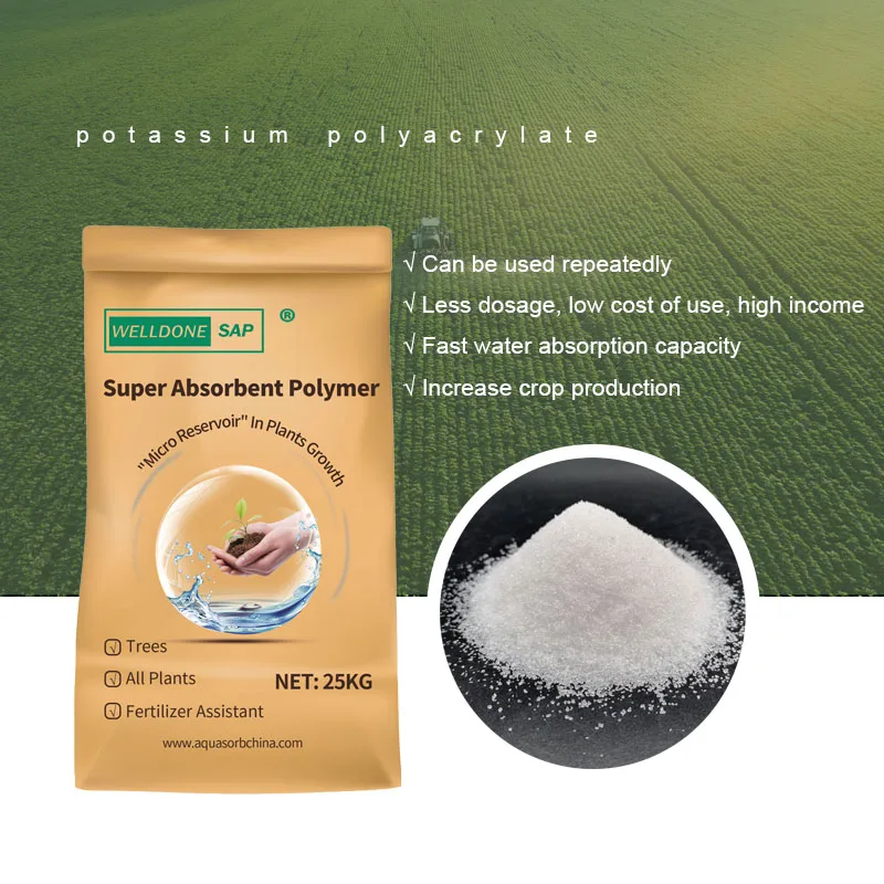 Super Absorbent Polymer | Save Water 50% | More Yield 20% Super absorbent polymer is a new functional material with good water absorption and water holding capacity. We can use it absorbing, retaining or blocking liquid - Super absorbent polymer can absorb water up to hundreds times of its own weight and turn to water gel. As a Eco-friendly material, it is totally non-toxic, harmless and nonpolluting.