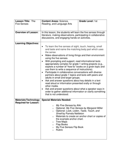 PDF The 5 Senses | 5E Lesson Plan for Grades K-2 [PDF] The 5 Senses | 5E Lesson Plan for Grades K-2 [PDF] Subject: This 5E Lesson plan for grades 3-5 helps elementary school students learn about the five senses. Includes an activity, video, reading material and quiz. Created Date: 11/10/2019 10:45:42 PM
