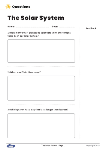 Solar System and Planets KS1 Comprehension Activity Use this colourful, informative comprehension activity to test your children's knowledge of Planets and the Solar System. This Solar System and Planets KS1 Comprehension Activity comes with 3 in-depth information sheets, each of which has its own set of questions attached. The information sheets are super colourful, with lovely images of the planets. In fact, outside of this activity ...