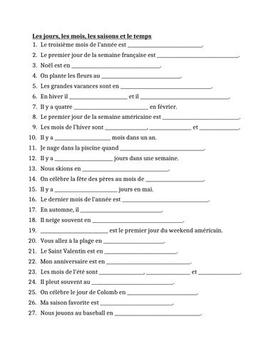 Weather and seasons worksheet