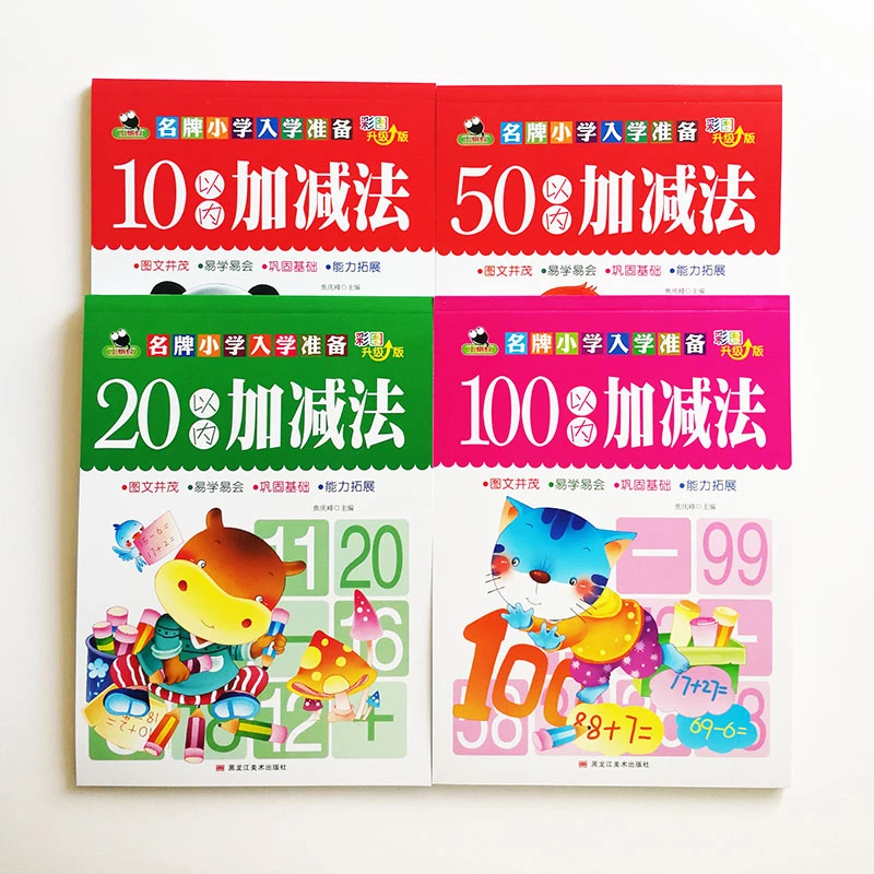 Math-Skills Books 4 Different Level Math Workbooks Addition&Subtraction (1-10,20,50,100) for Chinese Kids Early Education