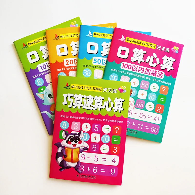 5Pcs Different Level Math Workbooks Addition&Subtraction(Under10,20,50,100) for Kids Educational Books Kindergarten Math Skills