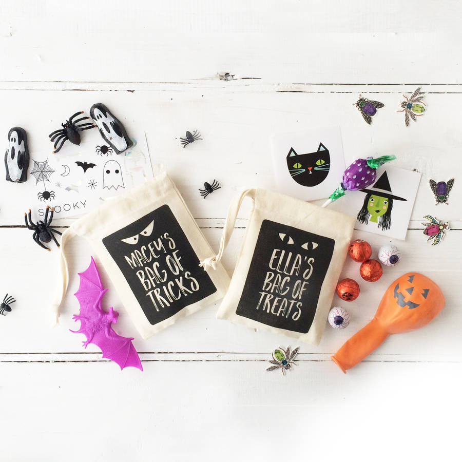 How to Make a Halloween Trick or Treat Bag - Insync-Ghosts.com To make the trick or treat bag more decorative, add some Halloween stickers or sprinkle some glitters after mixing this with some glue. You can also use this to write their name so no one will get it by mistake. Another way to make a treat or trick bag is to buy some fabric from the store and then sew it together.