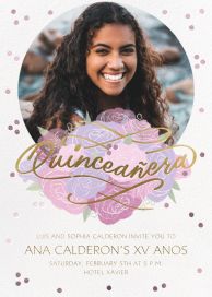 Quinceañera Invitations | Send online instantly | RSVP tracking Quinceañera invitations Go all out for your teen's 15th birthday with customizable online quinceañera invitations and templates. Add photos, track RSVPs, and send your way: via email, text message, or shareable link. Cards Stationery inspiredFlyer First 50 invites free!