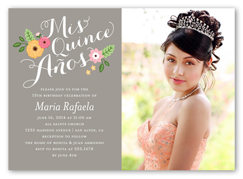 Photo Books, Holiday Cards, Photo Cards, Birth ... - Shutterfly Quinceanera invitations are the perfect prelude to a memorable day. Whether you're looking for an element of personalized elegance for your quinceanera invites or something more bright, floral and charming, you are sure to find a variety of patterns and colors to match your quinceanera theme.