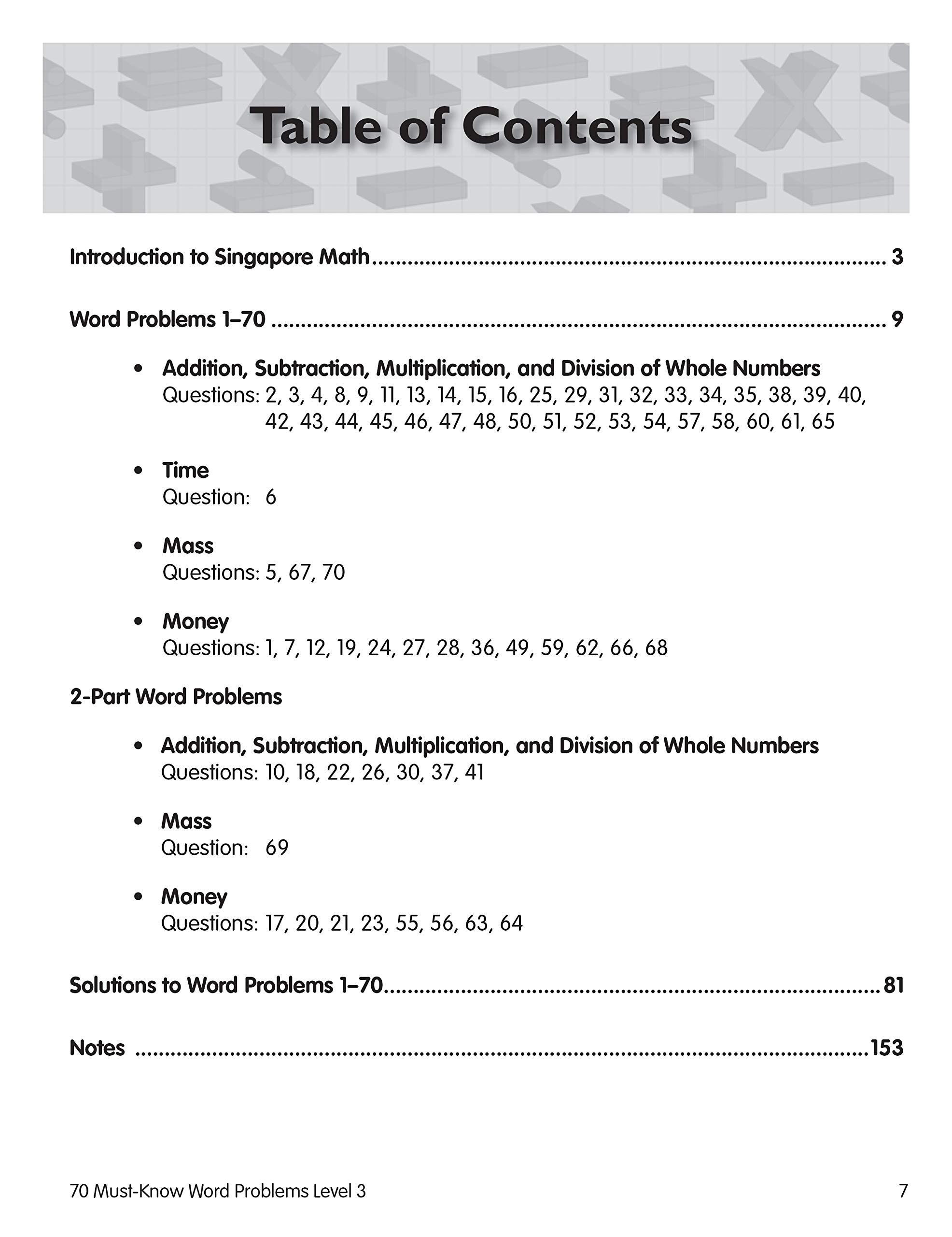 Amazon.com: Singapore Math Level 2 70 Must-Know Word Problems 3rd Grade ... Singapore Math Grade 3 Workbook, 3rd Grade Multiplication, Division, Addition, Subtraction, Formulas, Fractions, Graphs, Shapes and Patterns (256 pgs) Thinking Kids 594 Paperback 51 offers from $3.53 Singapore Math - 70 Must-Know Word Problems Workbook for 4th Grade Math, Paperback, Ages 9-10 with Answer Key Singapore Asian Publishers 321 Paperback