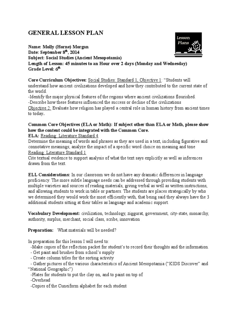 6th grade social studies lesson plan. › lesson-plans › third-gradeSearch 3rd Grade Social Studies Lesson Plans - Education Third grade social studies is all about global learning. Help your class be prepared for life outside the classroom with Education.com's social studies lesson plans. From learning about society interactions, the US government, and the overall community, we give teachers step-by-step instructions on how to use the material and be better prepared ... › lesson-plans › fourth-gradeSearch 4th Grade Social Studies Lesson Plans - Education When students aren't provided with an interactive, hands-on activity, studies show that the effects of learning have a much lower impact. Education.com offers just the remedy for this. Give your classroom the information about U.S. history, geography and cultures around the world with Education.com's fourth grade social studies lesson plans. › lesson-plan › third-grade-dailyThird Grade Daily Sub Plan 2 | Lesson Plan | Education.com CLICK on the image to download the full lesson plan. In general, this daily plan breaks down into this approximate time frame for the day: Two to three hours of literacy; One hour of math; One hour of connected content (social studies and/or science) Thirty minutes of art, movement, or fun › lesson-plan › counting-coinsCounting Coins | Lesson Plan | Education.com Pre-teach coin names and values to students prior to the lesson and have students orally share the names and values with you after the lesson to check for understanding. Provide students with a chart that lists the names on the coins with corresponding visuals and the coin's worth.