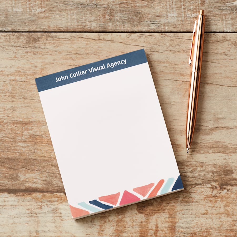 Custom Notepads, Personalized Notepad Printing | VistaPrint How you personalize your notepad is up to you.Available in 4 sizes, you can add a quote, photo, business logo and more.Then choose between a cardboard reserve backing (good for notepads that will be used on desks or flat surfaces) or a magnetic backing (great to add to a fridge or filing cabinet). Quick online ordering Ready to start creating?