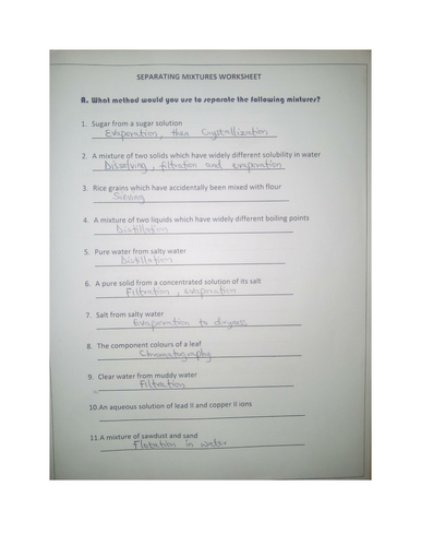SEPARATING MIXTURES WORKSHEET WITH ANSWERS | Teaching Resources
