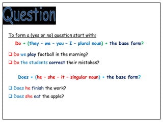 Simple Present. Verbs ending in y When a verb ends in y ...