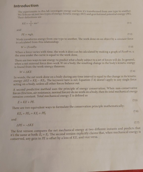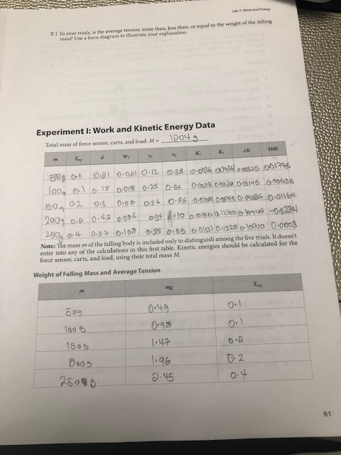 Lab 7-Work and Energy on an Air Track - Report for Experiment ... Lab 7-Work and Energy on an Air Track lab report for work and energy University Northeastern University Course Lab For Phys 1151 (PHYS 1152) Academic year2021/2022 Helpful? 00 Comments Please sign inor registerto post comments. Students also viewed Experiment 1 Measurment Lab 7.Work and Energy - s3.wp.wsu.edu Lab 7.Work and Energy Goals •To apply the concept of work to each of the forces acting on an object pulled up an incline at constant speed. •To compare the total work on an object to the change in its kinetic energy as a first step in the application of the so-called Work-Energy Theorem.