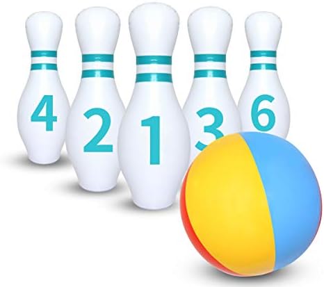 41 Best best kids bowling sets in 2022: According to Experts. - GamePolar Giant Inflatable Kids Bowling Set - 6 27″ Jumbo inflatable bowling pins - 1 24″ Yard Bowling Ball -30″Glow Tape-1 Foot Pump-1 Mesh Bag-10 Score Sheet-Indoor Outdoor Lawn Bowling set for Adult Kids -Sports & Outdoors
