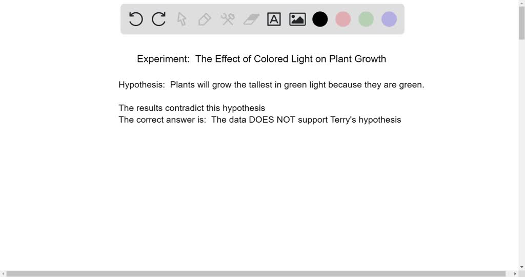 How Light Affects Plant Growth | Science project - Education Purpose: The purpose of this project is to show that different colors of light affect the development of plants. Hypothesis: I predict that plants will grow better under blue, red and yellow lights than they will under white and green lights. Download Project Add to collection Plant Growth Under Different Colors Of Light - Grower Today A white light is also used for colorizing the plants. Red light stimulates growth and promotes root development. It also improves the production of chlorophyll. It also reduces the growth of harmful bacteria. Blue light is used to promote flowering. It also helps to regulate circadian rhythms. How does colored light affect plant growth experiment? The hypothesis was that if a plant grew under a green light, then it would grow faster than plants under other lights. The plant that grew the fastest was the plant under the red light. The results of this experiment show a slight preference for growth for the red light followed by white or blue and then green light. How different colored lights affect plant growth? - MassInitiative The color of light DOES affect plant growth, but the effect is more noticeable under low light intensity. Red & blue light are most effective for plant growth, while yellow & green have minimal effect. UV light can damage plants, causing leaves to burn. Growers often use supplemental light to optimize plant growth.
